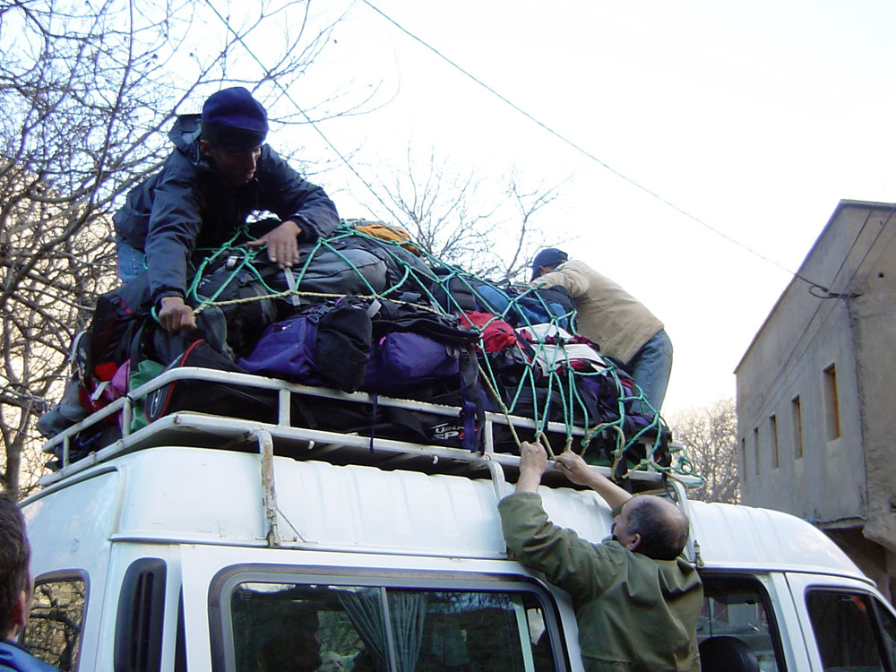 Loading the transfer bus with our stuff.